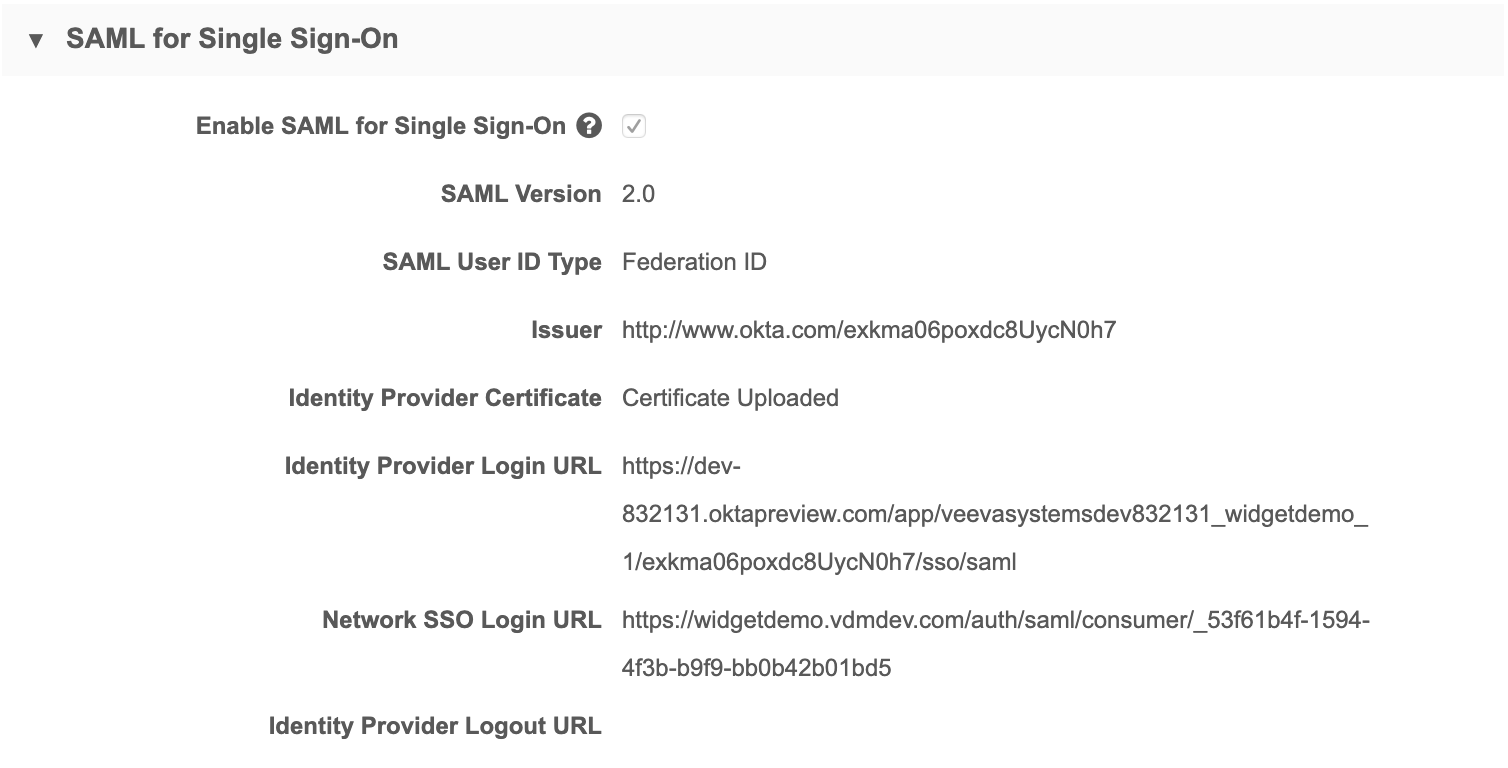 The following sections describe some of the key areas to verify as you complete configuration for single sign-on within your Network instance and on your identity provider administration pages. Minor discrepancies in any of these settings can cause authentication to fail and prohibit widgets from loading.