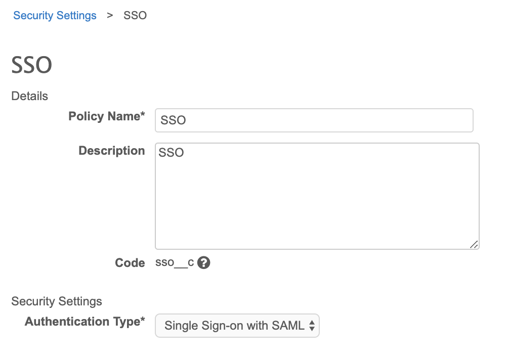 If this occurs, ensure that a policy exists in Network and that its Authentication Type field is set to Single Sign-on with SAML.