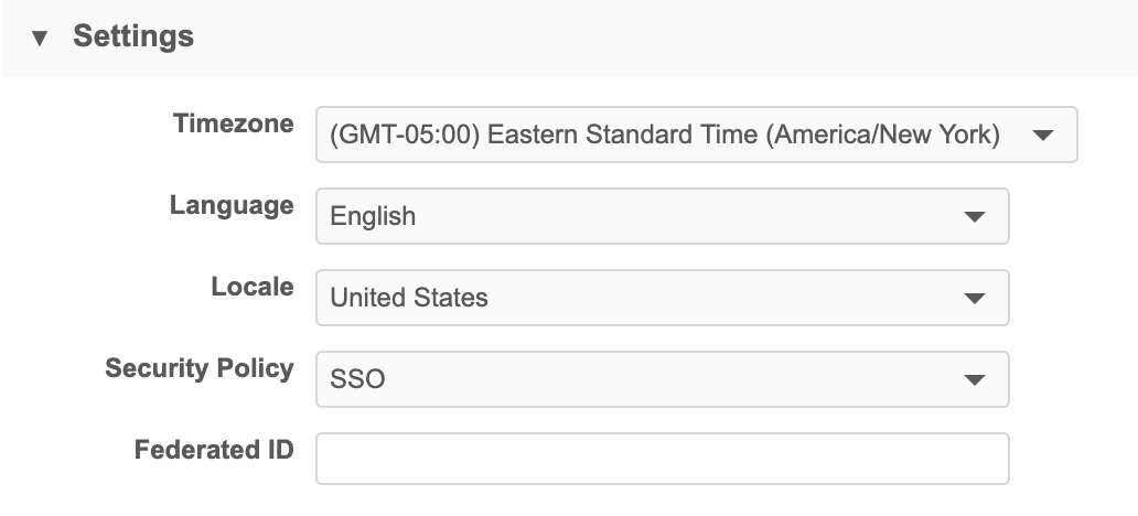 Any users that will require single sign-on access will need to be assigned this profile. In the user's profile, this is done in the Settings section, in the Security Policy drop-down list.
