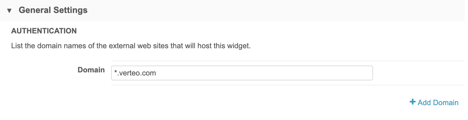 Conversely, if your domain setting is too broad (for example, *), your widget may be exposed to unwanted access. You should check these settings throughout configuration (and beyond, as web application domains may change) to ensure that the domain is masked appropriately.