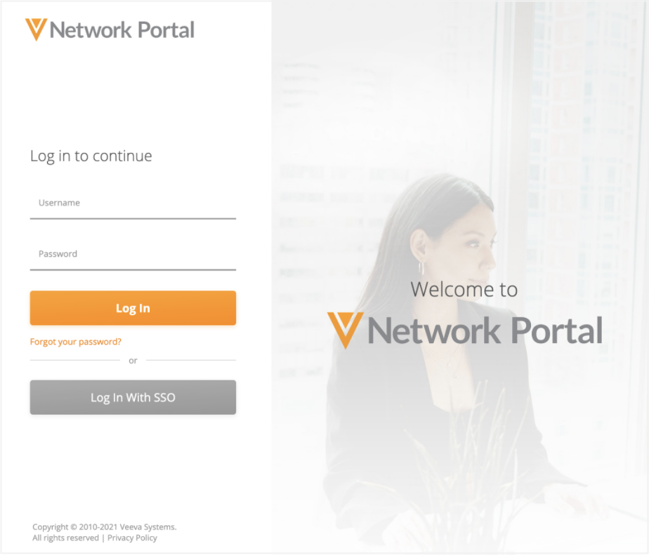 Business users can log into the Network Portal using their Network username, a Portal Username (for non-SSO customers), or through single sign-on (SSO).