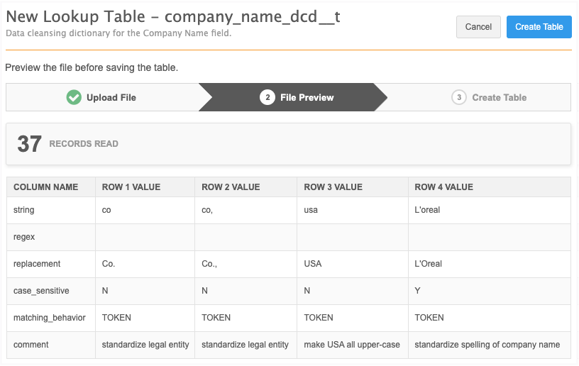 When you have created the data cleansing rules, upload the .csv file as a lookup table.