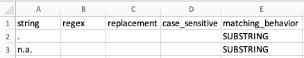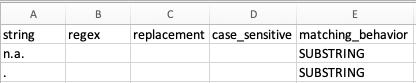 matching_behavior - Identify the type of string or substring to match for replacement. If the column is not included in the file, the default matching behavior is SUBSTRING.