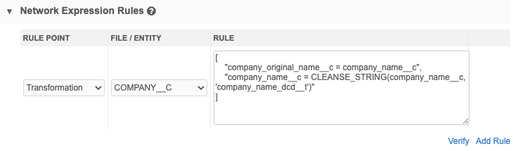 "company_name__c = CLEANSE_STRING(company_name__c, 'company_name_dcd__t')"