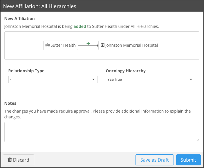 Discard - Click to return to the hierarchy without removing the affiliation.