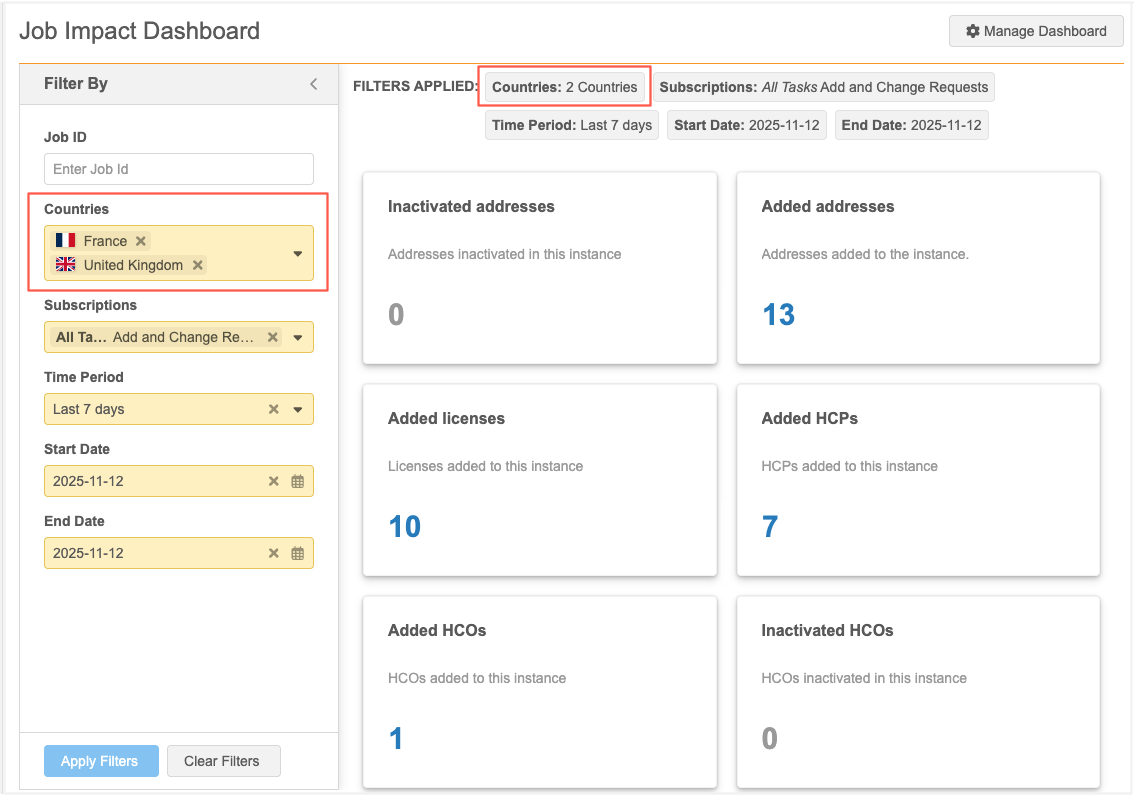 Job Impact Dashboard queries can now be filtered by country.