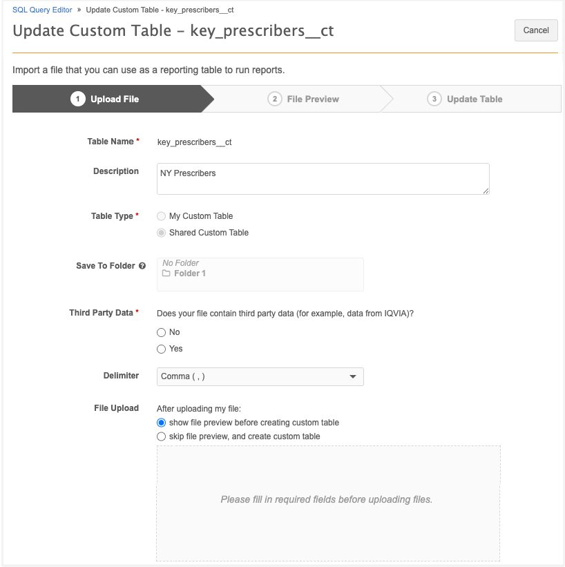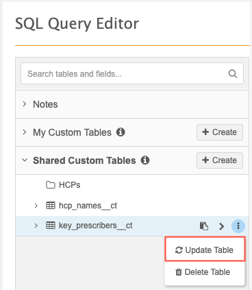 Custom tables accessible in the SQL Query Editor can now be updated. Previously custom tables could only be deleted or recreated using the same name.