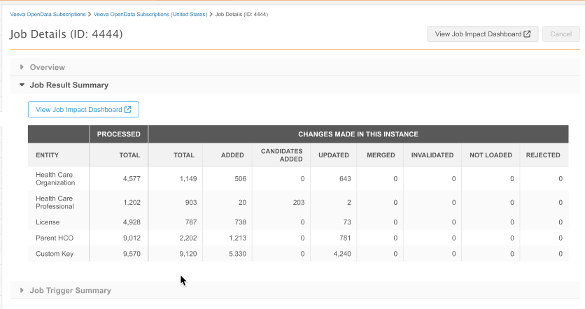 The Job Result Summary now includes a new column that displays the total count of processed records. Previously, this data was available only in the Job History section on the country configuration.