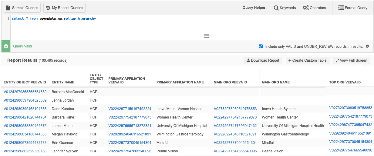OpenData Flat Primary Hierarchy - Use to report on the records that Veeva OpenData considers as primary.